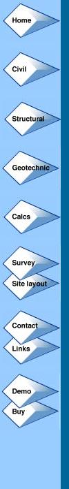 Home * Civil * Structural * Geotechnic * Site Survey & layout * Calcs * Contact & Links * Demo & Buy | ||