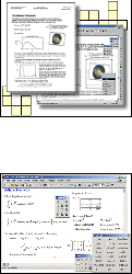 | Use Mathcad to perform numeric calculations or to find symbolic solutions. It automatically tracks and converts units and operates on scalars, vectors, and matrices. Here is an overview of Mathcad's computational capabilities: * Numeric operators perform summations, products, derivatives, integrals and Boolean operations. * Numeric functions apply trigonometric, exponential, hyperbolic and other functions and transforms. * Symbolics simplify, differentiate, integrate, and transform expressions algebraically. Mathcad's patented live symbolics technology automatically recalculates algebraic solutions. * Vectors and Matrices manipulate arrays and perform various linear algebra operations, such as finding eigenvalues and eigenvectors, and looking up values in arrays. * Statistics and Data Analysis generate random numbers or histograms, fit data to built-in and general functions, interpolate data, and build probability distribution models. * Differential Equation Solvers support ordinary differential equations, systems of differential equations, and boundary value problems both at the command line and in solve blocks that use natural notation to specify the DiffEQs and constraints. * Variables and Units handle real, imaginary, and complex numbers with or without associated units. * High-performance calculation engine provides speed and sophisticated memory management to help you find solutions faster.