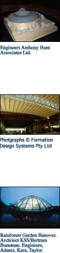 Multiframe3D Features *Graphical specification of restraints, loads and geometry *Rescale, generate and duplicate functions *Display of Moments, Shear, Deflection and Axial force *Optional user defined node renumbering *Prescribed displacements *Selective moment or torsion releases *Uniform, triangular or trapezoidal loads *Loads on all or part of any member *Factored combinations of load cases *Built in library of structural shapes *Built-in calculation sheet for detail design *Graphical highlighting of forces, deflections or stresses *Animation of deflected shapes Formation Design Systems Title Page Multiframe 4D Multiframe 2D Section Maker Steel Designer | Multiframe 3D - 3D structural analysis * 3D modelling and visualisation * Totally graphical interface * Comprehensive analysis capabilities * Data exchange to and from AutoCAD and Excel Fast and accurate structural analysis is the foundation of all computer aided structural design. Multiframe helps you get the results you require by providing powerful, yet easy to use analysis capabilities. Multiframe's 3D analysis tools give you an exceptionally powerful and flexible means of creating, analyzing and examining results for your structures. A built in range of methods for automatically constructing geometry, restraints, materials and loading conditions lets you concentrate on the problem at hand, not on the software you are working with. Although Multiframe offers unsurpassed ease of use and a complete graphics working environment, it also provides all the computational power you need for complex structural analysis. All types of framed structures may be modeled and can include special structural features such as springs, prescribed displacement, member releases and pinned joints. Because Multiframe is designed to work the way you do, it offers automatic factoring of load cases, automatic inclusion of self weight and a range of commands to automate the generation of regular geometry such as continuous beams, curved beams, trusses and high rise frames. Multiframe's built in library of common structural shapes let you analyze steel, concrete or timber frames. You can include sections made from any other material or automatical.